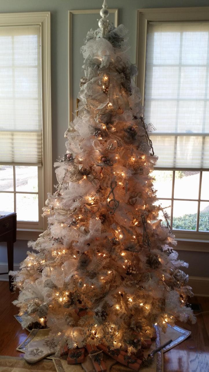Here is this year’s Christmas tree. I’ve never had white tree. Isn’t it gorgeous? Let me know what you think.