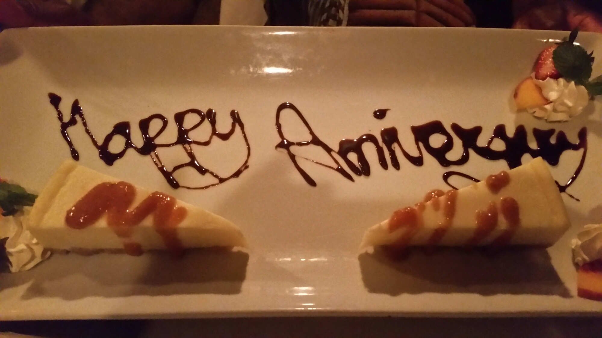 Dinner is served. I had Gulf shrimp and grits. Hubby had seared beef. Deelish!