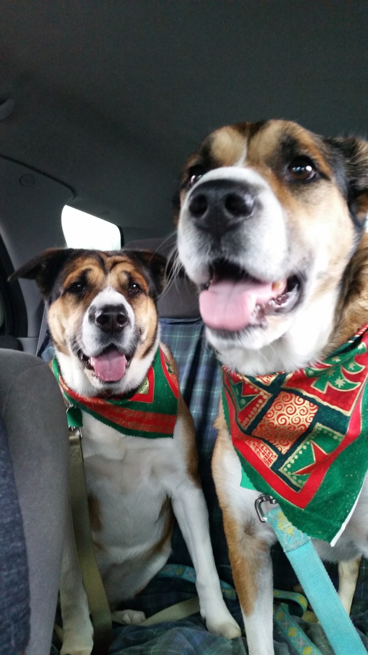I found this beautiful holiday remnant and made bandanas for the twins. It took me longer to get them still for the pic.