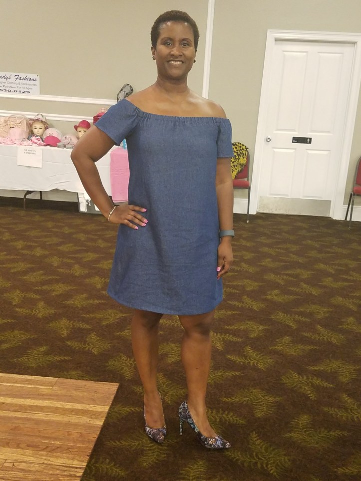 Pattern alterations or any design changes you made: I used the short sleeves from View A and shortened the dress hem (View D) by 2.5″. I used the Small size at top and under arms. According to the pattern, finished product at the bust, waist, and hips measured 36″, 39″, 42″. Since my waist and hips measure 2 inches more, I added 1/2 inch from the Small line on sides for fit.