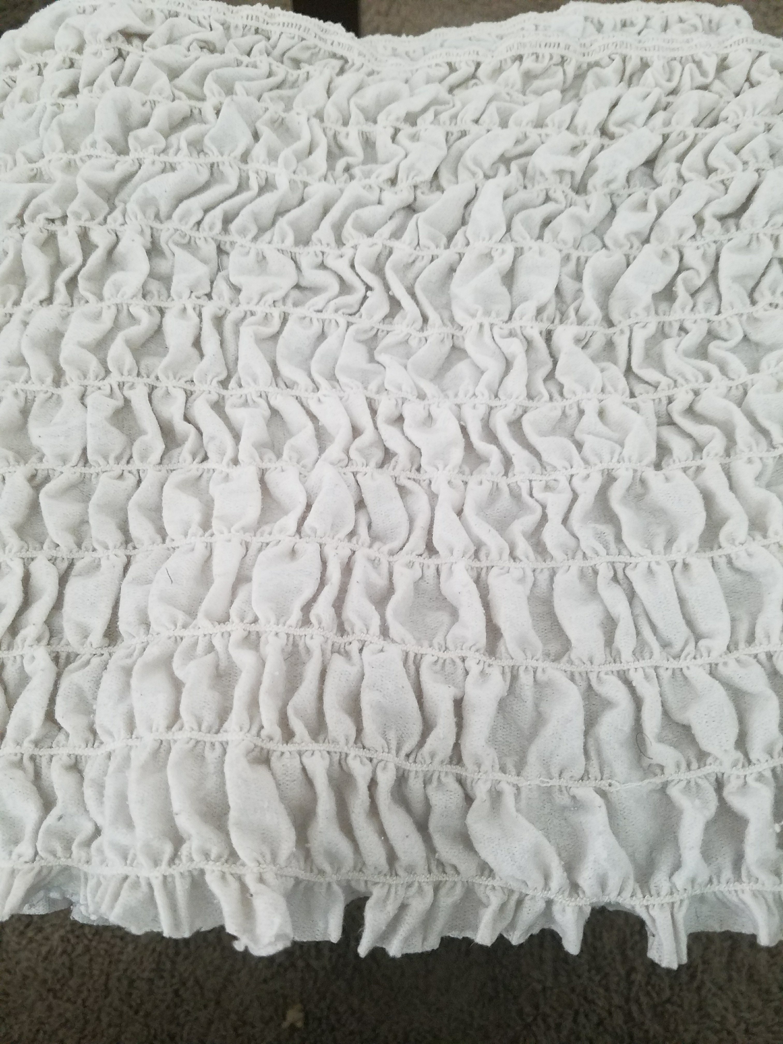 Since it’s already shirred with elastic, I can see it dyed for a cute top to a sundress.