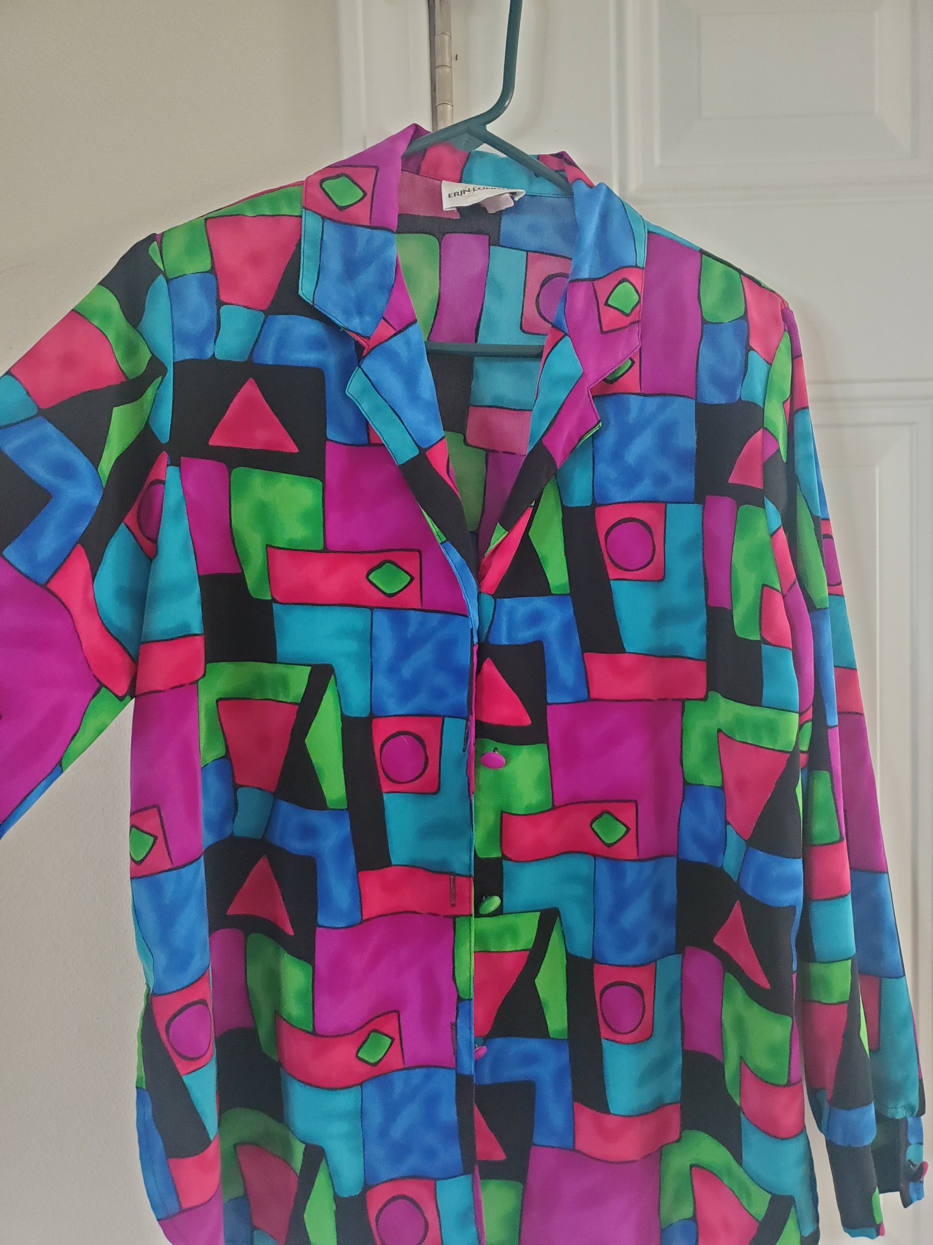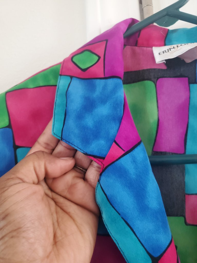 I do hope you are well. I am right at 2 days and 12 hours post Hurricane Sally in Pensacola, FL…without power. I know, right. We are better than most and blessed to only have minor damage to our privacy fence. But hurricanes and power outages is not why you are here. This bright, bold shirt is why you are here. And probably the fabric transformation about to unfold.